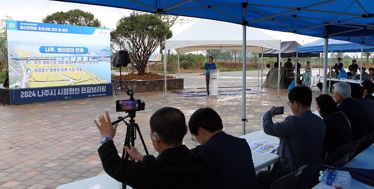 나주시는 이날 오후 2시 영산강 정원 조성 현장에서 언론인 70여명이 참석한 가운데 윤병태 시장이 ‘2024 시정 현안 현장브리핑’을 했다고 밝혔다.