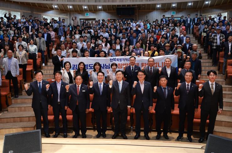 고창군의회 방문에 이어 동리국악당으로 옮긴 김관영 도지사는 고창군민 350여명과 ‘민생으로 한 걸음, 행복으로 만 걸음’을 주제로 특별자치도 출범에 따른 백년대계와 전북자치도, 고창군과의 비전에 대하여 직접 설명했다.