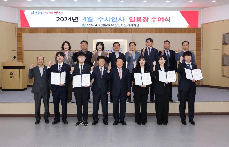 특히 임용장 수여식에서는 새내기 공무원들에게 양산시 공무원으로서의 소속감 및 자긍심 고취를 위한 시 상징 뱃지를 달아주고, 청렴도서 목민심서와 기념 명함을 함께 전달하며 새 출발의 기쁨을 함께 나눴다.