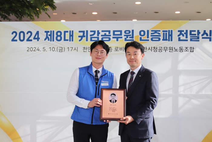 [뉴스서울] 천안시청공무원노동조합은 지난 10일 제8대 천안시청 귀감공무원으로 이종택 서북구청장을 선정하고 인증패 전달식을 진행했다고 밝혔다.