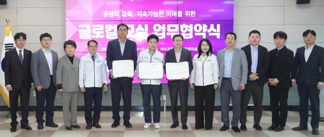 전남교육청은 30일 여수교육지원청에서 LG전자(부사장 장익환), LG헬로비전(대표 송구영)과 업무협약을 맺고, 공생의 교육, 지속가능한 ‘글로컬 미래교실’ 구축을 위해 힘을 모으기로 했다.