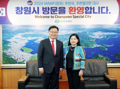 [뉴스서울] 창원특례시는 22일 창원시청 접견실에서 마리아 테레사 디존-데베가(Maria Theresa B. Dizon-De Vega) 주한필리핀 대사 일행을 맞아 2024년 맘프 추진 방향과 필리핀과 창원시의 교류 발전 방안에 대해 논의했다.