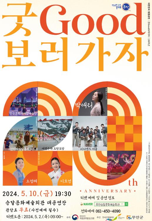 [뉴스서울] 전남 무안군은 5월 10일 오후 7시 30분에 승달문화예술회관 대공연장에서 ‘2024년 굿(GOOD)보러가자’ 첫 번째 공연을 개최한다.