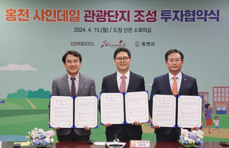 [뉴스서울] 강원특별자치도와 홍천군은 4월 15일 도청 신관 소회의실에서 세안레져산업(주)과 '홍천 샤인데일 관광단지 조성' 투자 협약식을 체결했다.