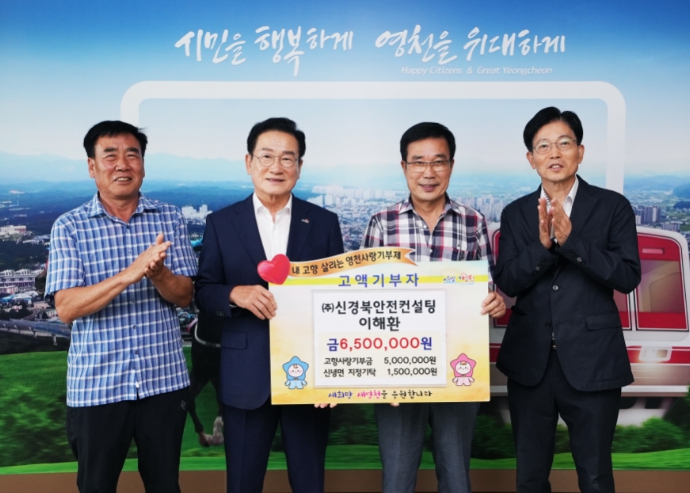 경주시 현곡면에 소재한 (주)신경북안전컨설팅은 재해예방 기술 지도와 안전진단, 안전교육 등을 전문으로 하는 업체로 이날 시장실을 방문해 이해환 부사장 명의로 고향사랑기부금 최고액인 500만 원을 기탁했다. 또한 150만 원 상당의 답례품 또한 전정숭 경영책임의 외가인 신녕면의 이웃을 위해 사용해달라며 신녕면행정복지센터에 전달했다.