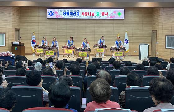 이 밖에도 난타, 색소폰 연주 등 축하공연으로 다양한 즐길 거리가 펼쳐져 어르신들의 건강과 흥을 돋웠으며 오후에는 어르신과 함께 어울림 공연, 어르신 농촌사랑 이야기 듣기 등 화합 한마당 행사로 이루어졌다.