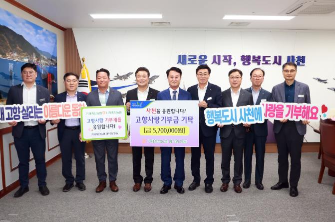 이날 옥방호 거제축협조합장, 신우경 농협거제시지부장, 이형주 사천축협조합장, 조윤환 농협사천시지부장 등 관계자 8명이 사천시청을 방문해 고향사랑기부금을 전달했다.