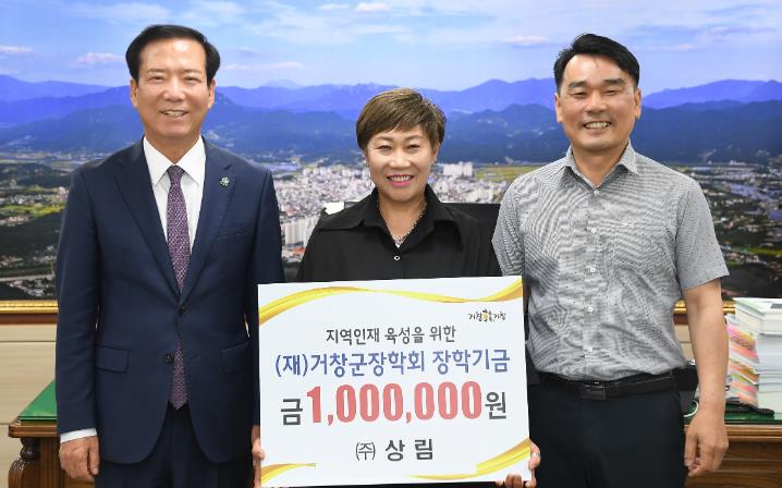 마지막으로 거창읍 대평리에서 전기 내선공사 분야 사업을 하고있는 ㈜상림에서 김재율 대표, 신숙현 이사가 참석해 장학금 100만 원을 기탁 했으며, ㈜상림에서는 2021년과 2023년에도 아림1004운동에 각각 100만 4,000원을 기탁하며 꾸준한 기부 활동을 이어 오고 있다.