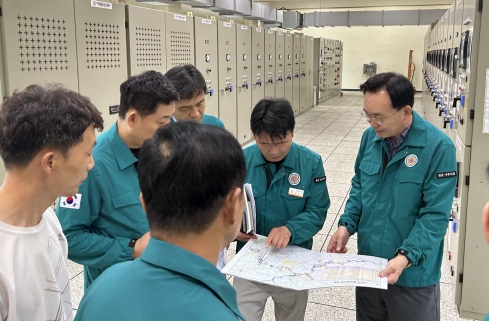 ▲ 윤병태 나주시장이 21일 새벽 호우주의보 발효에 따라 밤샘 근무한 직원들을 격려하고 배수펌프장 등 재해예방시설을 점검했다. (사진제공-나주시) |
