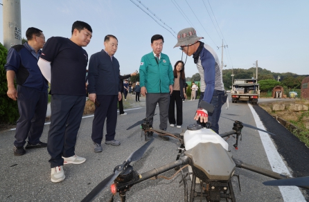 1천442ha 면적을 대상으로 공동방제로 사업비 7억3천700만원을 들여 고품질 생산자재를 광역살포기, 드론을 이용해 살포했다.