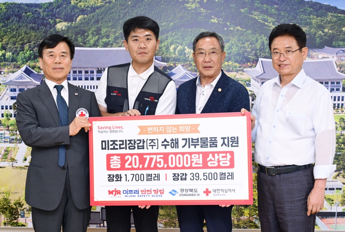 [뉴스서울] 경상북도는 19일 도지사 접견실에서 미조리장갑(주)과 함께 재해구호 물품 전달식을 열었다.