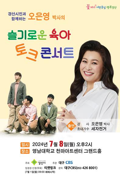 [뉴스서울] 경산시는 7월 8일 오후 2시 영남대학교 천마아트센터 그랜드홀에서 ‘경산시민과 함께하는 오은영 박사의 슬기로운 육아 토크 콘서트’를 개최한다.