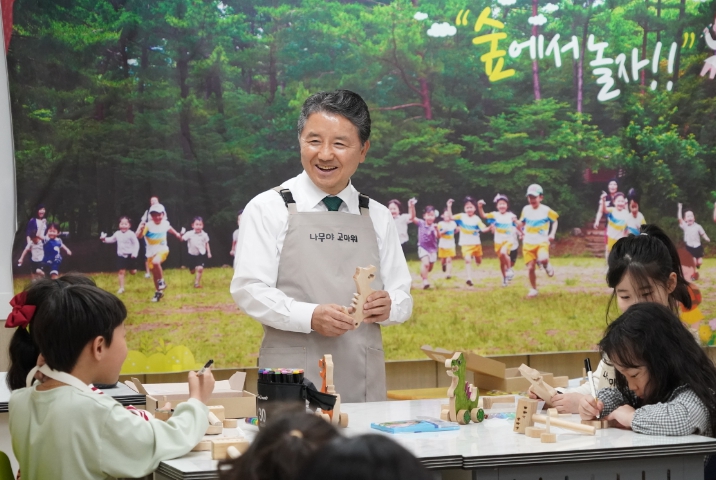 [뉴스서울] 산림청은 대전 대흥초등학교에서 남성현 산림청장이 ‘늘봄학교’ 일일교사로 참여해 목공체험 숲교육을 진행했다고 15일 밝혔다.