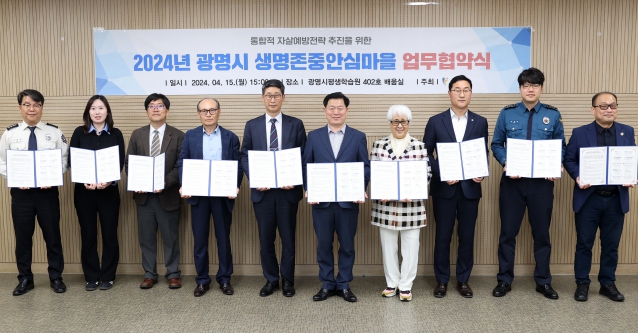시는 15일 오후 광명시 평생학습원에서 9개 관련 기관과 ‘2024년 생명존중 안심마을 조성 업무협약’을 체결했다.
