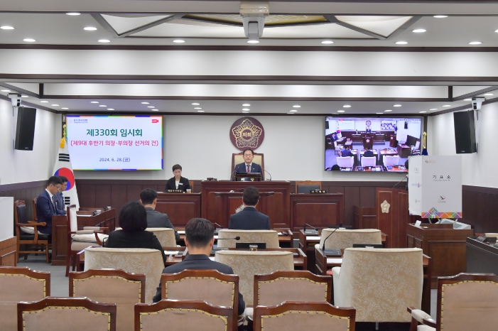 [뉴스서울] 동두천시의회는 28일 제330회 임시회를 열고 제9대 후반기 의장단을 선출했다.