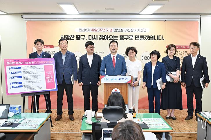 이어서 민선8기 후반기 미래상(비전)을 제시하며, 남은 임기 동안 ‘희망찬 중구, 다시 찾아오는 중구’를 만드는 데 매진하겠다고 밝혔다.