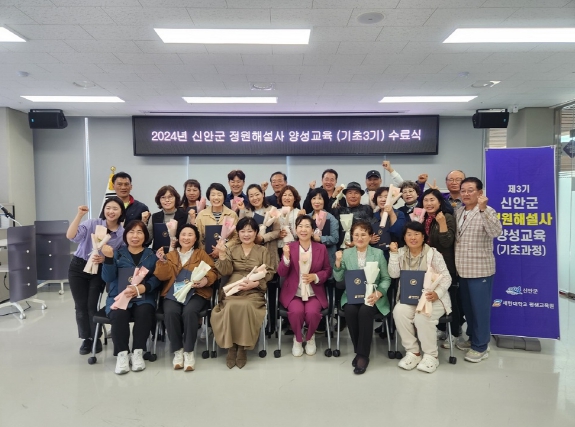 [뉴스서울] 신안군이 전국 최초로 시행한 정원해설사 양성 교육이 새로운 정원문화와 정원에 대한 이해도를 높여가고 있다. 지난 2월부터 9주간 진행된 이번 교육은 정원해설사 양성교육기초과정 3기로 23명이 성공적으로 마무리했으며, 관람객들에게 관내 정원의 이야기를 담은 양질의 해설 서비스를 제공하게 될 것이다.