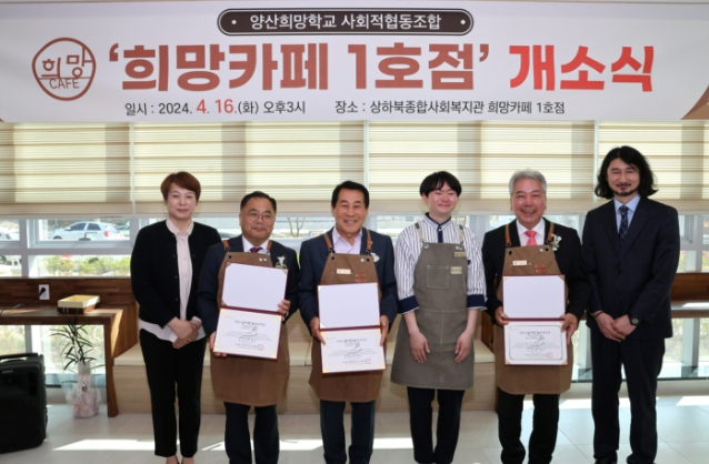 [뉴스서울] 양산시는 상하북종합사회복지관(상북면 삼계동길 27) 1층 카페 공간에 양산희망학교 사회적협동조합의 중증장애인 취업과 실습 장소 제공을 위한‘희망카페’1호점을 16일 개소했다고 밝혔다.