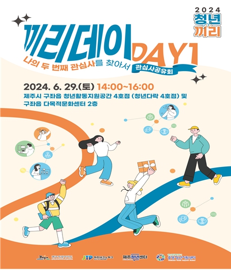 [뉴스서울] 제주특별자치도와 제주청년지원센터는 오는 6월 29일 지역청년 네트워킹 행사인 "끼리데이 DAY1: 나의 두 번째 관심사를 찾아서"를 개최해 제주청년 동아리들의 네트워킹 활성화를 도모한다.