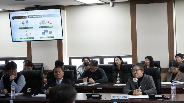 | ▲ 하유정 정보데이터정책관(오른쪽 첫번째)이 29일 정부대전청사에서 열린 '인공지능 기반 통관 영상관리 솔루션 사업' 완료보고회에서 발언하고 있다 |