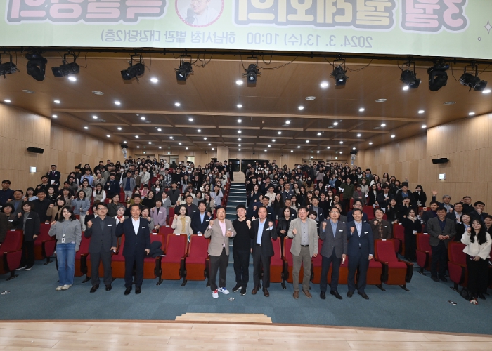 충주시 김선태 홍보맨은 현재 64만명이 넘는 구독자를 확보한 충주시 유튜브 운영 전문관이자 스타 공무원으로, 이번 강연은 하남시청 직원들의 많은 요청과 기대 속에서 이뤄져 400여 명의 직원들이 참석했다.