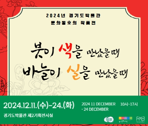 [뉴스서울] 경기문화재단 경기도박물관은 2024년 12월 11일 수요일부터 12월 24일 화요일까지 2주간 2024년 경기도박물관 문화동호회 작품전을 개최한다. 이번 전시는 박물관 문화동호회 ‘민화학교’와 ‘규방공예학교’에서 제작된 다양한 작품을 많은 분들과 공유하고자 기획된 전시이다.