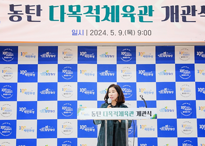 화성시의회 김경희 의장은 이날 축사에서“동탄다목적체육관이 개관되어 지역사회의 발전에 이바지할수 있게 되어 기쁘다”라고 하며,“동탄다목적체육관이 시민 체력 증진과 문화적 체험 장소가 되어 지역공동체의 징검다리 역할을 하는 복합공간이 되기를 바란다”라고 전했다.