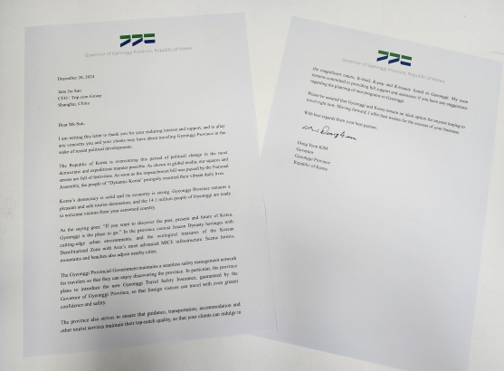 김동연 지사는 편지에서 “대한민국은 가장 민주적인 방법으로 가장 빠르게 정치적 변화를 극복하고 있다. 탄핵이 가결된 이후, 시민들은 평소와 다름없는 활기찬 일상을 보내고 있다”면서 “대한민국의 민주주의는 탄탄하며 경제는 견고하다. 경기도는 변함없이 즐겁고 안전한 여행지다. 1,410만 경기도민 모두 언제나 여러분을 따뜻이 맞이할 준비가 되어 있다”고 말했다.