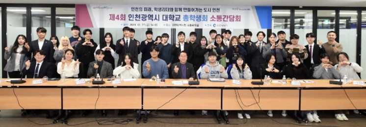 [뉴스서울] 인천광역시는 12월 27일 시청 소통회의실에서 유정복 시장과 인천지역 10개 대학교 총학생회가 참여한 가운데 ‘제4회 인천시 소재 대학교 총학생회 소통간담회’를 개최했다고 밝혔다.