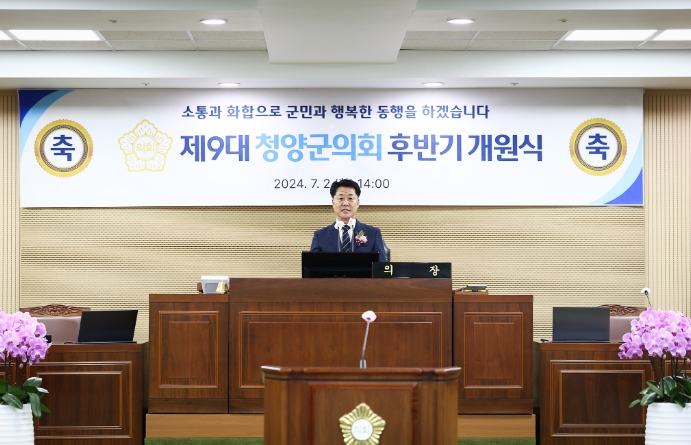 [뉴스서울] 제9대 청양군의회(의장 김기준)가 2일 본회의장에서 후반기 개원식을 열고 ‘군민을 섬기는 일꾼‘으로서 후반기 의정활동의 본격적인 시작을 알렸다.