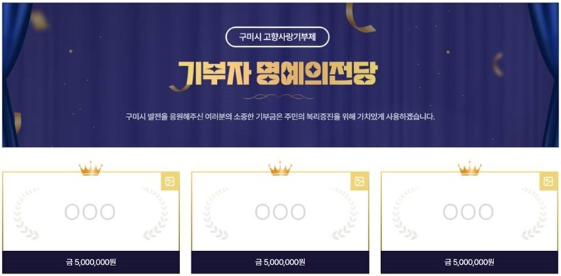 | ▲ 구미시, 고향사랑기부제‘온라인 명예의 전당’개설 |