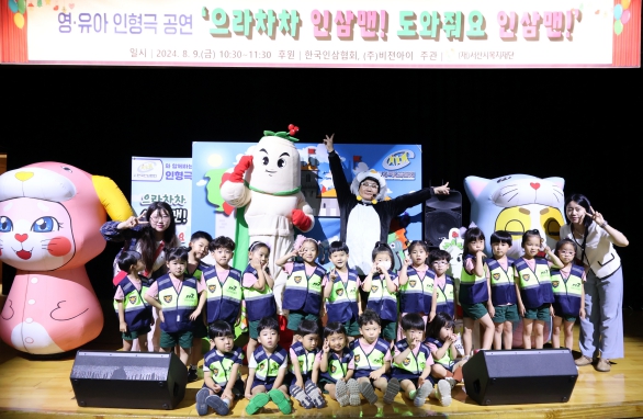 [뉴스서울] (재)서산시복지재단은 8월 9일, 관내 영·유아 169명을 대상 으로 ‘으라차차 인삼맨! 도와줘요 인삼맨’ 인형극 공연을 진행했다고 밝혔다.
