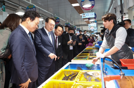 [뉴스서울] 박완수 경남도지사는 13일 경남 사천 한국항공우주산업(주)(KAI)에서 ‘대한민국 우주산업 클러스터 출범식’을 마치고 윤석열 대통령과 함께 삼천포 용궁수산시장을 방문해 상인들을 격려했다.