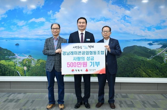 [뉴스서울] 경남 레미콘공업협동조합에서는 9일 거제시청에 방문하여 이웃 돕기 성금 500만 원을 전달했다.