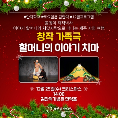 ▲ 토요일은 김만덕! 제주도김만덕기념관, 12월 프로그램 창작가족극‘할머니의 이야기치마’크리스마스 특별공연 |
