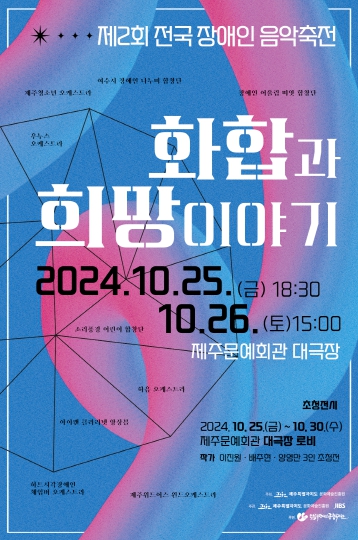 이번 음악축전은 25일 오후 6시 30분, 26일 오후 3시에 열린다. 공연 기간을 전후로 문예회관 대극장 로비에서는 ‘아름다운 동행’이라는 주제로 제주지역 발달장애인 청년작가 3인(이진원, 배주현, 양영만)의 작품 초청 전시도 진행된다.