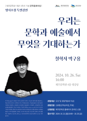 오는 26일 제주문학관에서 열리는 이번 명사 초청 특강은 ‘우리는 문학과 예술에서 무엇을 기대하는가’를 주제로, 문학과 예술의 철학적 담론을 일상의 언어로 풀어낼 예정이다.