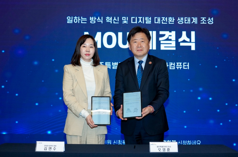 이날 제주도는 한글과컴퓨터와 ‘일하는 방식 혁신 및 디지털 대전환 생태계 조성을 위한 업무협약’도 체결했다.