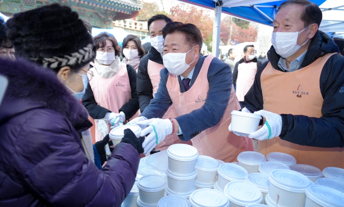 제주도는 제주감귤 공동브랜드 ‘귤로장생’ 할인 판매와 함께 도내 농촌융복합산업 인증업체의 감귤과즐, 발효식초, 감귤청, 진공건조감귤 등 다양한 가공품을 선보여 시민들의 발길을 사로잡았다. 봉은사가 동짓날을 맞아 준비한 1만명 분의 팥죽도 겨울나기의 훈훈한 정을 더했다.