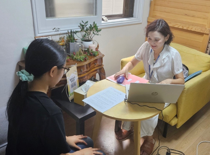 ▲ 8월26일 서울 은평구 소재의 두더집에서 한국고용정보원 상담사(우측)가 고립·은둔 청년(좌측)을 대상으로 ‘찾아가는 상담 서비스’를 제공하고 있다. |