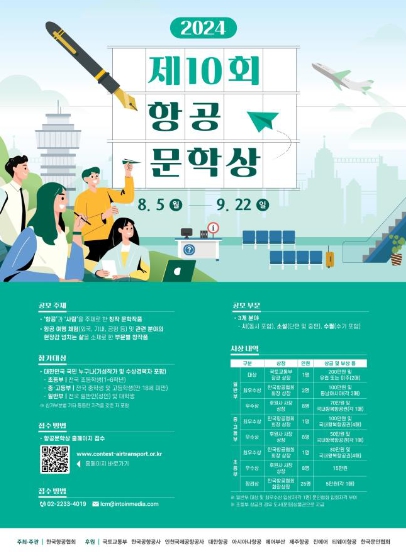 [뉴스서울] 국토교통부와 한국항공협회는 “제10회 항공문학상 공모”를 실시한다.