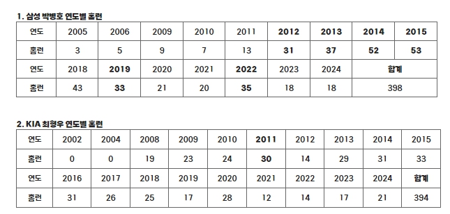 ▲ 연도별 홈런 |