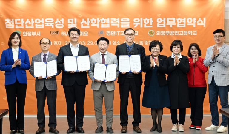 [뉴스서울] 의정부시의회는 29일 오전 의정부시청 중회의실에서 진행된 ‘의정부시-㈜시지바이오-경민IT고-의정부공업고 첨단산업육성 및 산학협력을 위한 업무협약식’에 참석했다.