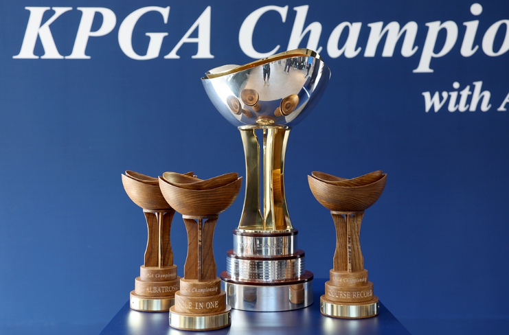 6일 ‘제67회 KPGA 선수권대회 with A-ONE CC’ 1라운드가 열리고 있는 경남 양산 소재 에이원CC 클럽하우스에는 ‘KPGA 선수권대회’의 실제 트로피를 형상화한 ‘목각 트로피’가 있다.