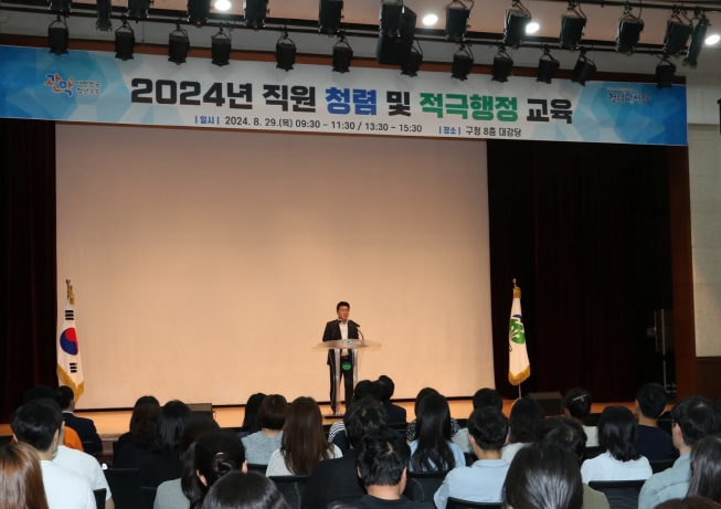 구는 전 직원을 대상으로 청렴과 적극행정 교육을 실시하여 공직자의 청렴 의식을 고취하고, 주민의 불편을 해소하는 적극행정의 중요성을 돌아보는 시간을 가졌다.
