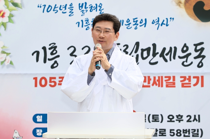 이 시장은 기념사에서 “105년 전 오늘 기흥의 선열들께서 기미독립선언서에 적힌 그대로 우리 민족의 자유와 발전을 위해 분연히 떨쳐 일어나셨다”라며 “기미독립선언서에는 ‘착수가 곧 성공이다’라는 말이 있다. 105년 전 들불처럼 타오른 만세운동의 결실로 26년 뒤 광복을 쟁취했고 그 덕분에 오늘의 우리가 있다”고 말했다.