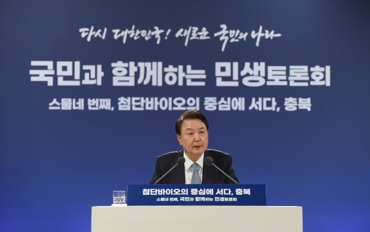 [뉴스서울] 윤석열 대통령은 26일 청주 동부창고에서 김영환 도지사와 중앙부처(과기·농림·산업·복지·국토·산림청 등) 관계자, 학계, 기업, 충북도민 등 100여명이 참석한 가운데 “첨단바이오의 중심에 서다, 충북”을 주제 스물 네 번째 민생토론회를 개최했다.