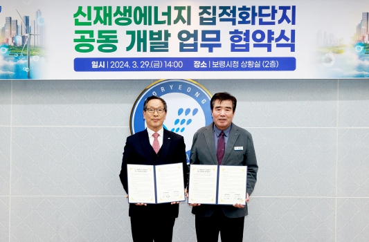 [뉴스서울] 보령시는 지난 29일 시청 상황실에서 김동일 시장, 이병호 한국농어촌공사 사장 등이 참석한 가운데 보령시 공공주도 태양광집적화단지 조성사업 관련 보령시와 한국농어촌공사 간 업무협약을 체결했다.