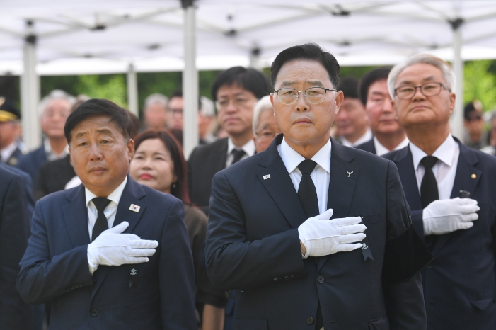 이어, 강 시장을 포함한 전몰군경유족회, 전몰군경 미망인회 등 보훈단체가 차례로 현충탑 제단 앞에 올라 헌화와 분향의 시간을 가지며 국가유공자의 희생과 공헌을 다시 한번 되새겼다.