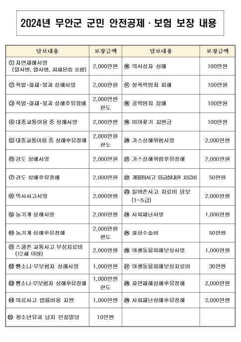 ▲ 무안군, 전 군민 대상 군민안전보험 보장범위 확대 가입 |